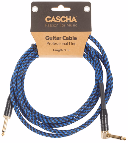 Cascha Professional Line Guitar Cable, Angled, Tweed Blue, 3 m