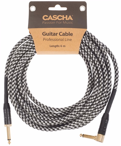 Cascha Professional Line Guitar Cable, Angled, Tweed Black, 6 m