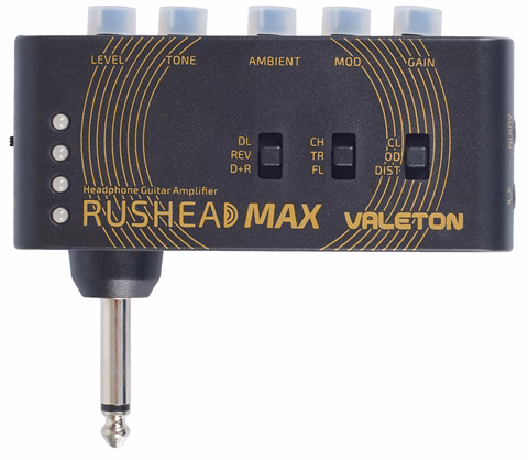 Regler: Level, Tone, Ambient, Mod, Gain, 3x toggle switch,